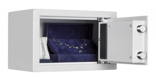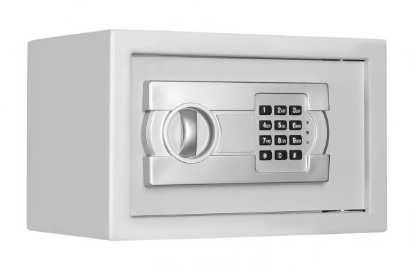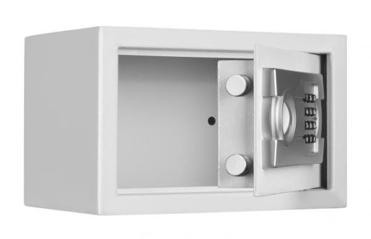 Serienmäßig mit Elektronikschloss mit mechanischer Notöffnung, 2 Notöffnungsschlüssel, akustische und optische Funktionsüberwachung, 3 bis 8-stelliger Benutzercode, inkl. Batterien